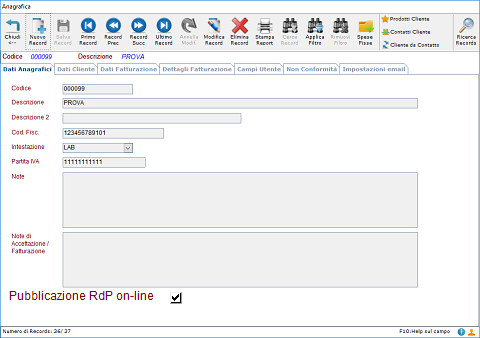 Gli utenti della servizio RdP on-line saranno generati/modificati in automatico dall’anagrafica clienti di LabPro ver AC