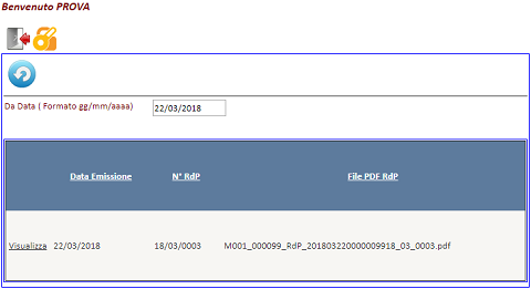 Il laboratorio di prova potrà ricercare i Rapporti di Prova disponibili sul WEB SERVER filtrando per data emissione e/o cliente.