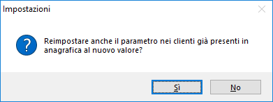 Qualora il default venga cambiato sarà possibile effettuare un aggiornamento massivo sui clienti già presenti in anagrafica.