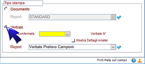 Selezionando l'opzione di Tipo Stampa "Verbale" verrà stampato il Verbale di campionamento relativo allo specifico documento (contratto o ordine da cliente); nel caso in cui lo stesso contenga più di una data/ora confermata (per campioni diversi) occorrerà selezionarne una specifica.