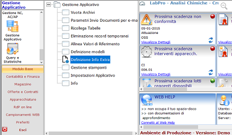 [Gestione Applicativo] -> [Definizione InfoExtra]